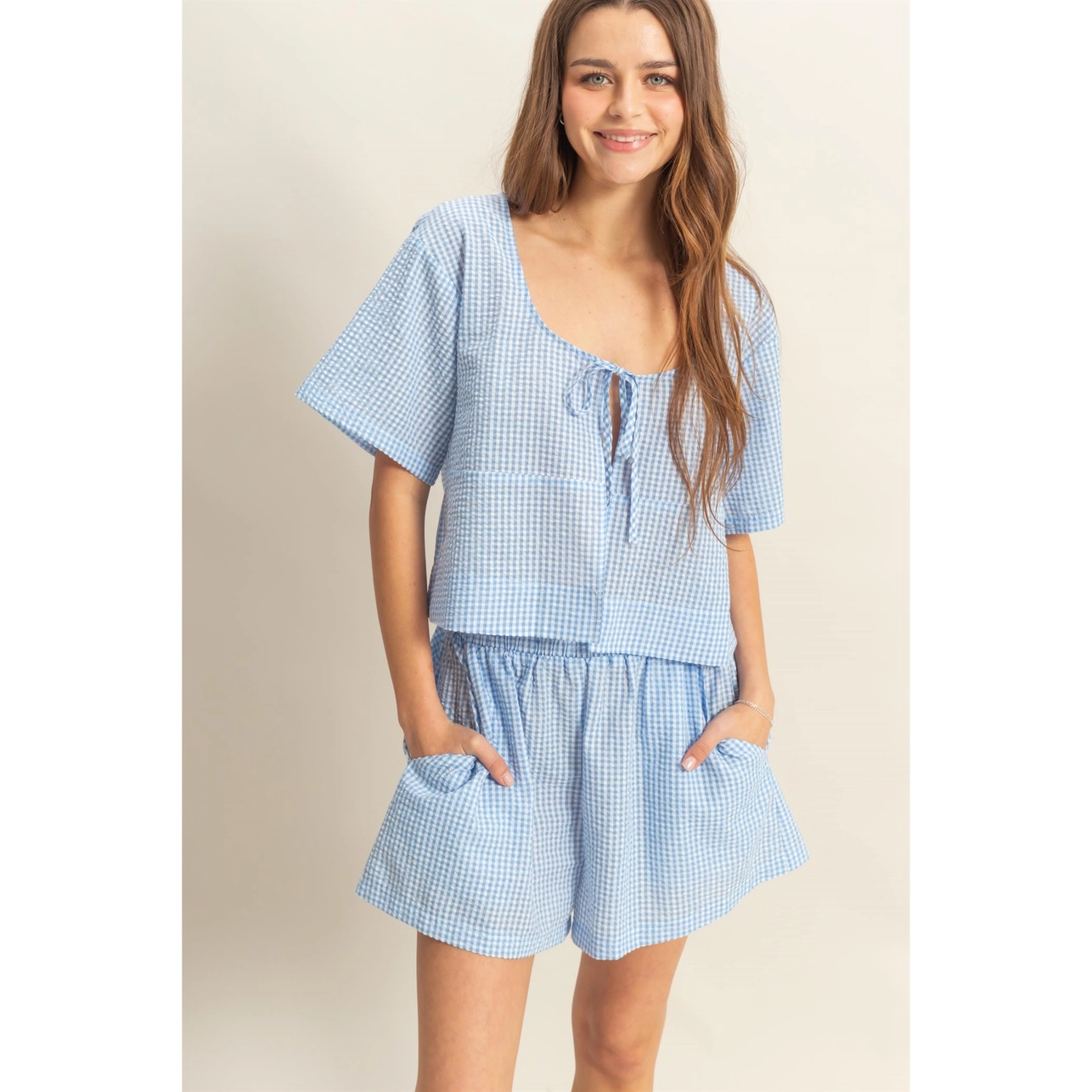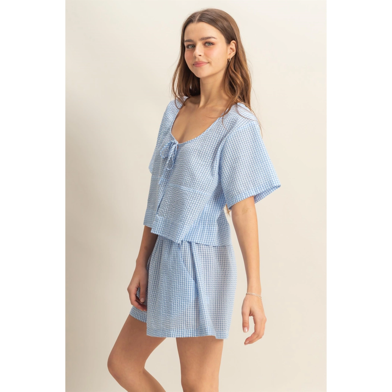 The DOUBLEZERO Plaid Set features a stylish plaid print with a matching top and skirt, offering a chic, coordinated look perfect for any season.