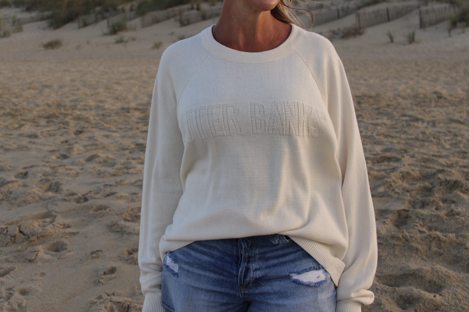 Cream – Soft cream with subtle natural “Outer Banks” lettering for a clean, neutral look that pairs with anything.